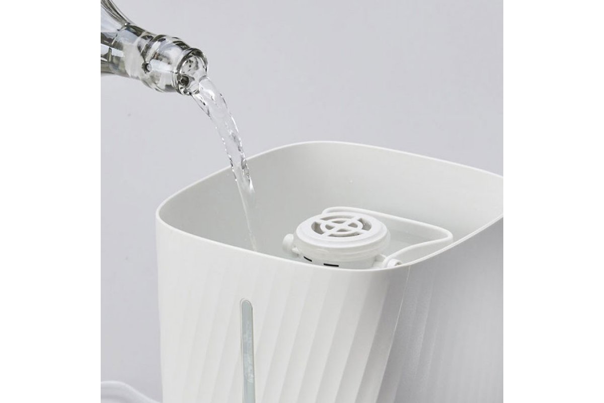 Резервоарът е оборудван и с дръжка, което прави работата и пренасянето много удобно. Освен това, двата прореза, разположени в основата на овлажнителя, означават, че можете безопасно да го преместите.