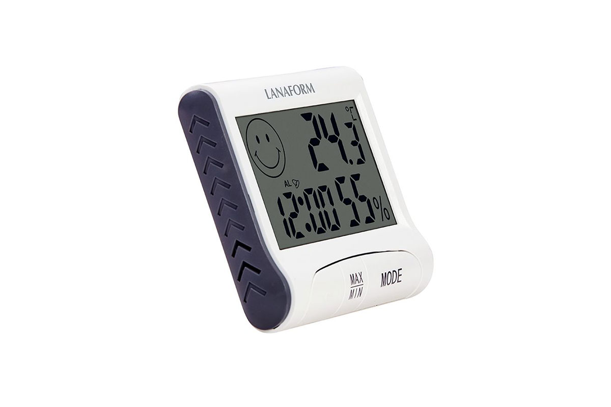 Цифровият термо-хигрометър ви позволява да поддържате перфектно ниво на влажност във вашия дом. Чрез измерване на нивото на влажност във въздуха, както и на температурата, термо-цифровият хигрометър поддържа перфектно ниво на относителната влажност в затворени помещения. Поддържането на нивото на влажността във въздуха между 40% и 60% значително намалява развитието на бактерии и вируси, както и предотвратява дехидратацията на кожата и лигавиците.